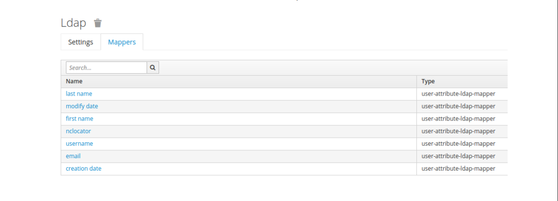 Après avoir défini le nouveau fournisseur, il est nécessaire de faire correspondre les attributs de l’annuaire avec ceux des utilisateurs qui vont être stockés dans Keycloak et qui pourront être transmis aux applications clientes :
